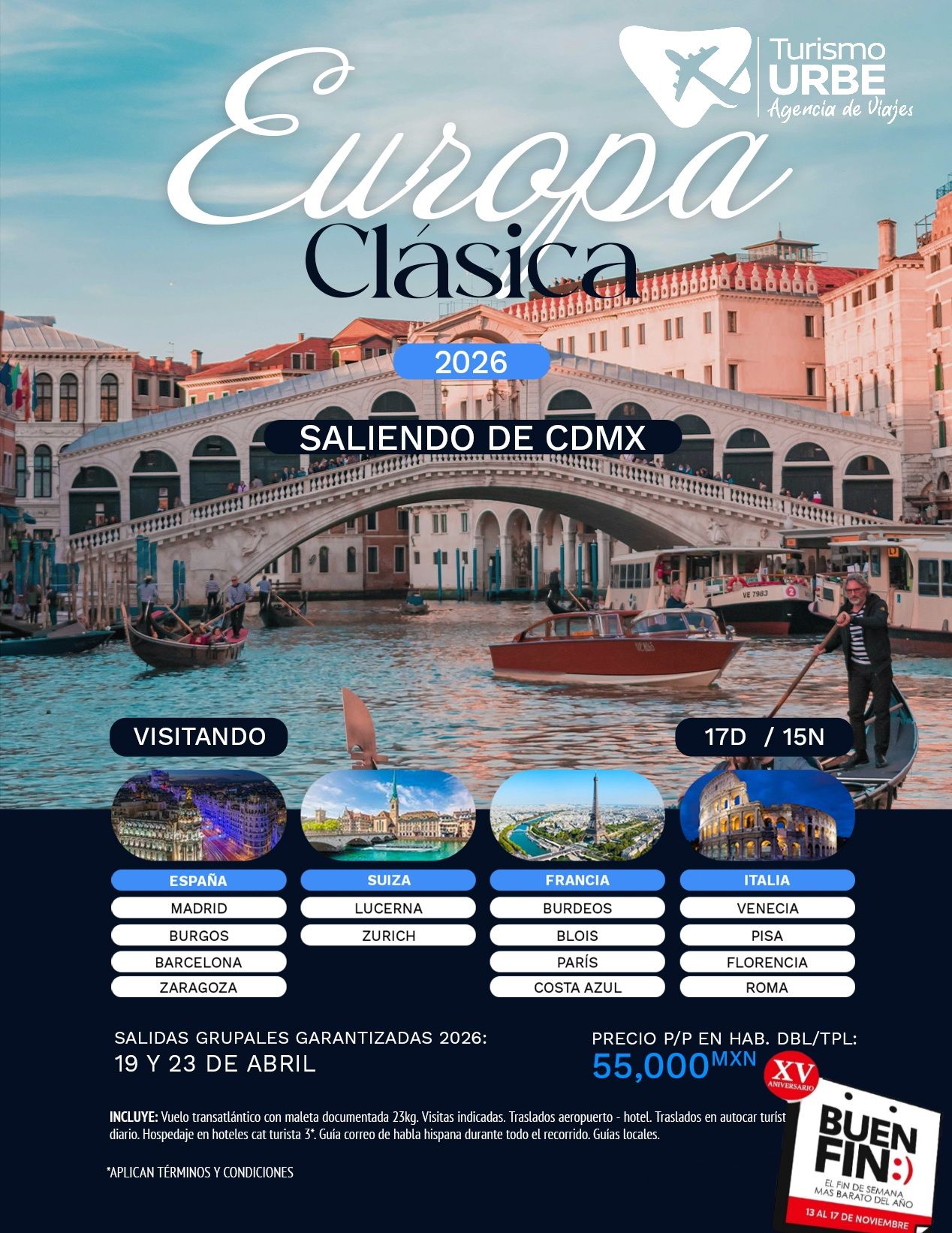 📌 No dejes pasar esta oportunidad única y reserva tu lugar para una aventura clásica por las ciudades más emblemáticas de Europa.